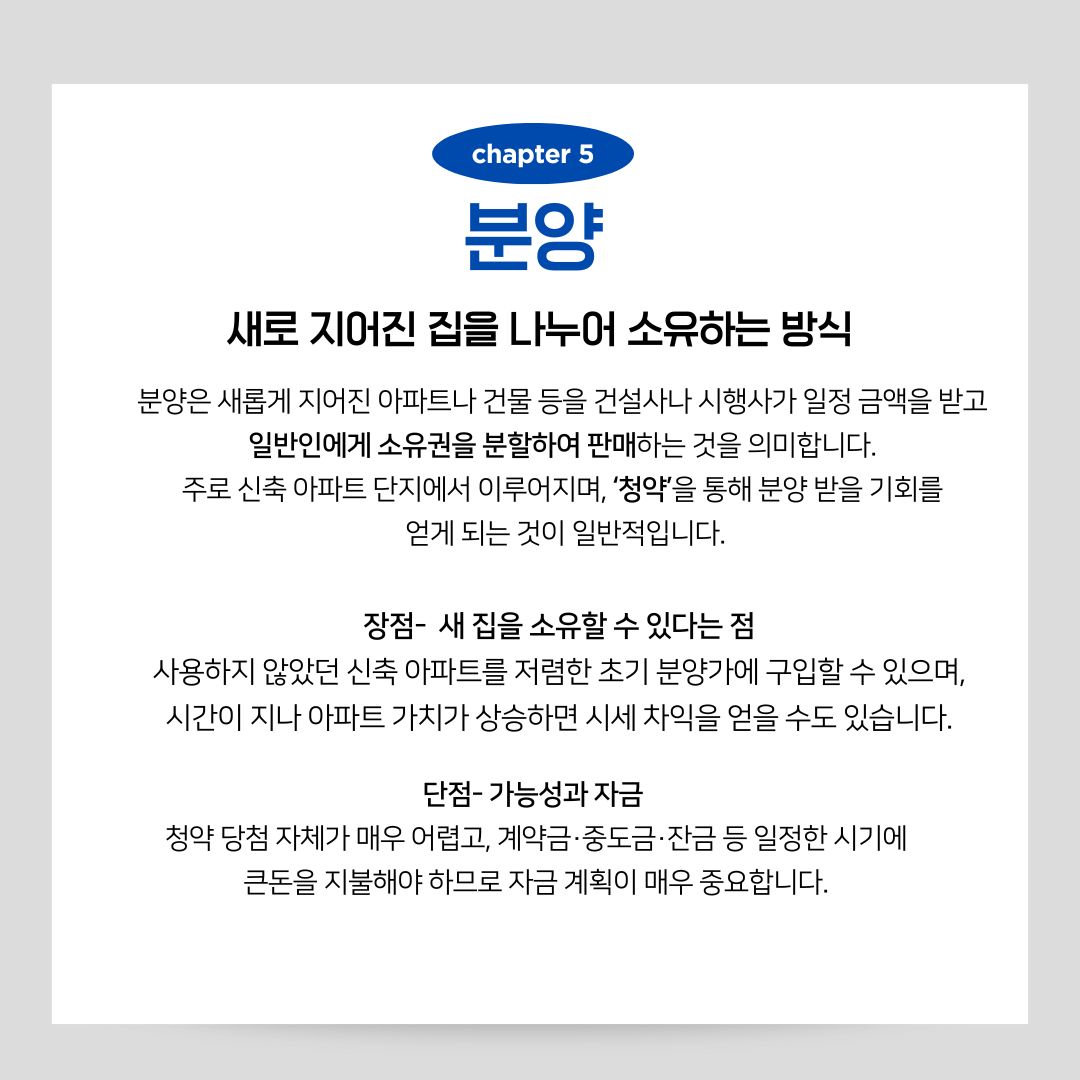 분양 – 새로 지어진 집을 나누어 소유하는 방식