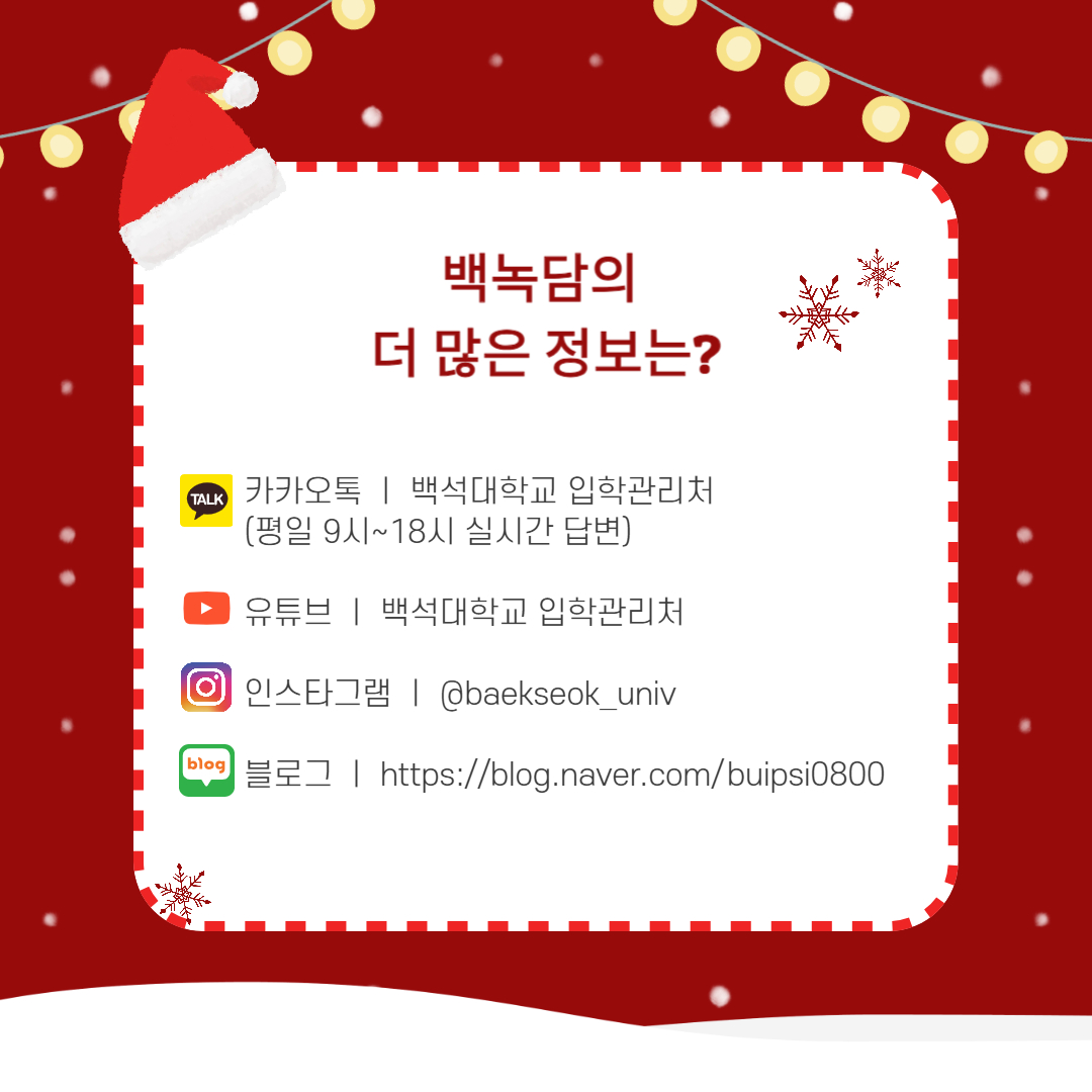 카카오톡 ㅣ 백석대학교 입학관리처 (평일 9시~18시 실시간 답변)