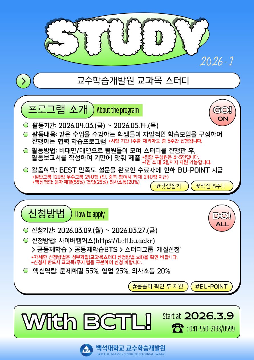 [교수학습개발원] 2026-1학기 교과목 스터디 모집 안내