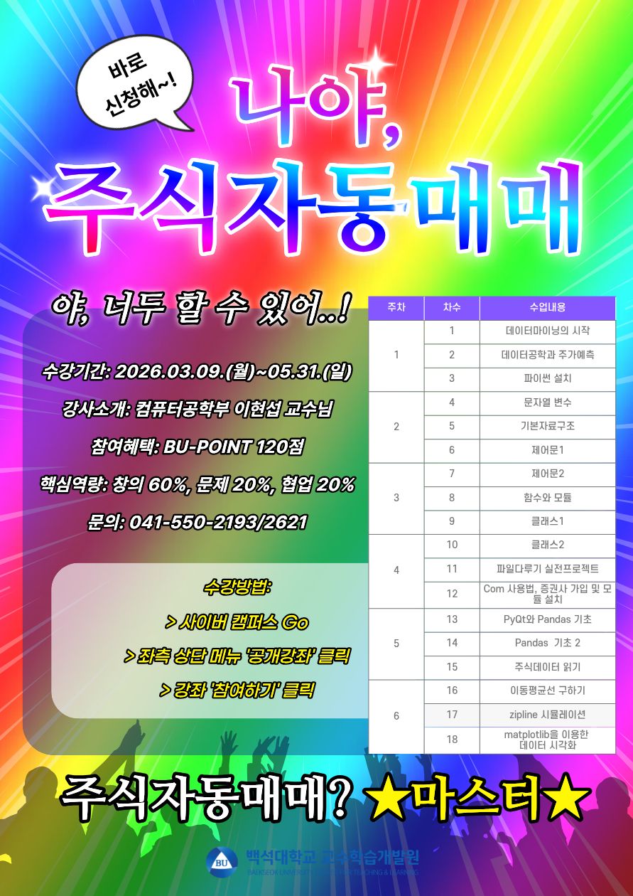 2026학년도 1학기 [교수학습개발원] 혁신역량 (주식자동매매) 모집 안내