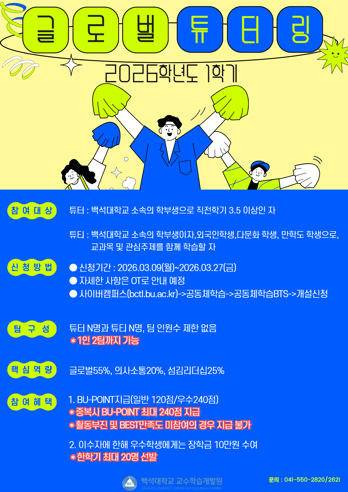 2026학년도 1학기 [교수학습개발원] 글로벌 튜터링 모집 안내