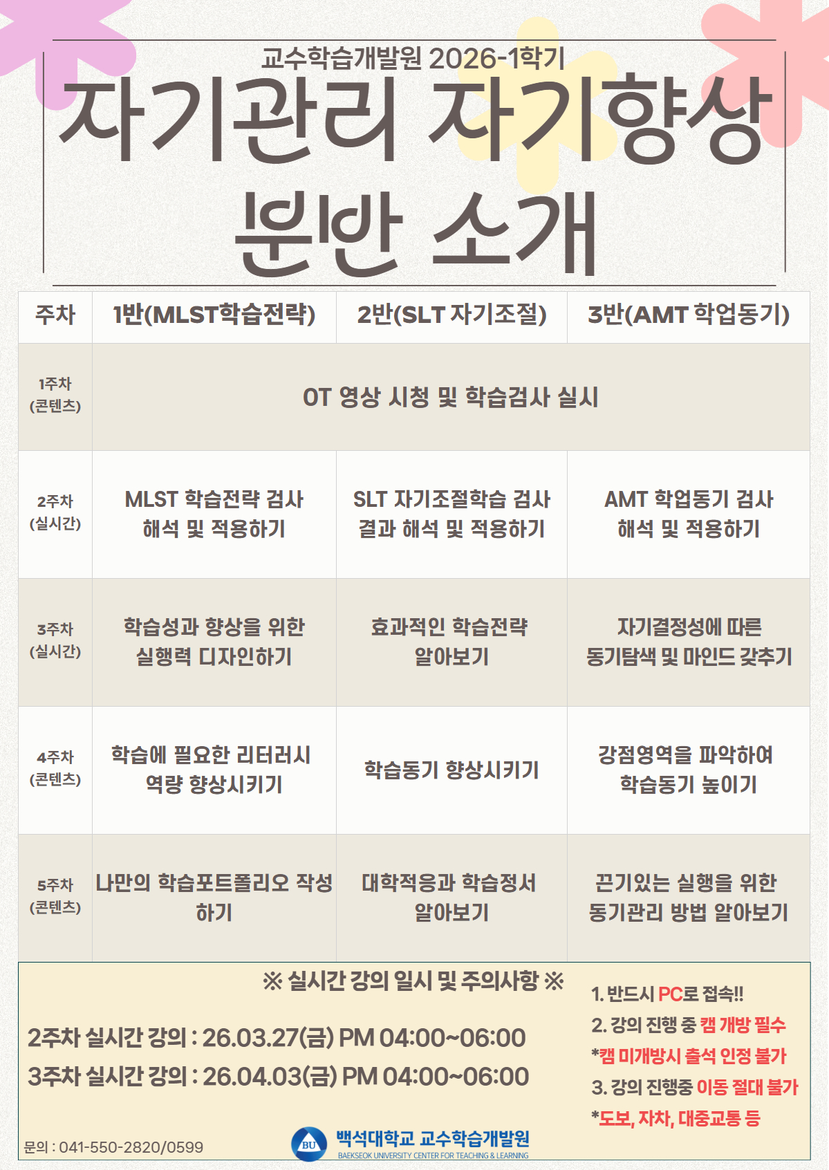 2026학년도 1학기 [교수학습개발원] 자기관리 자기향상 모집 안내