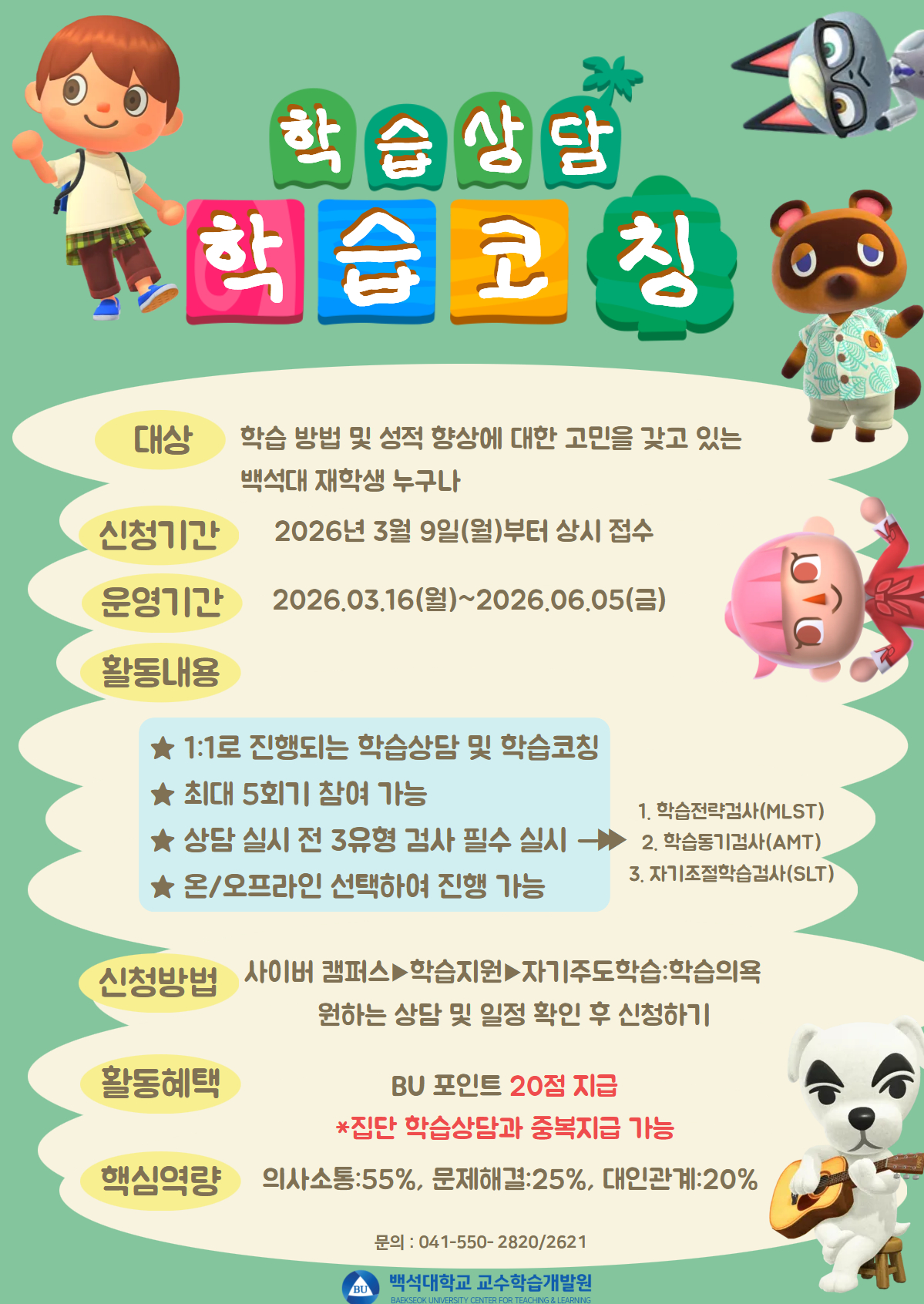2026-1학기 학습상담&학습코칭(일반 학습상담) 참여자를 모집합니다.
