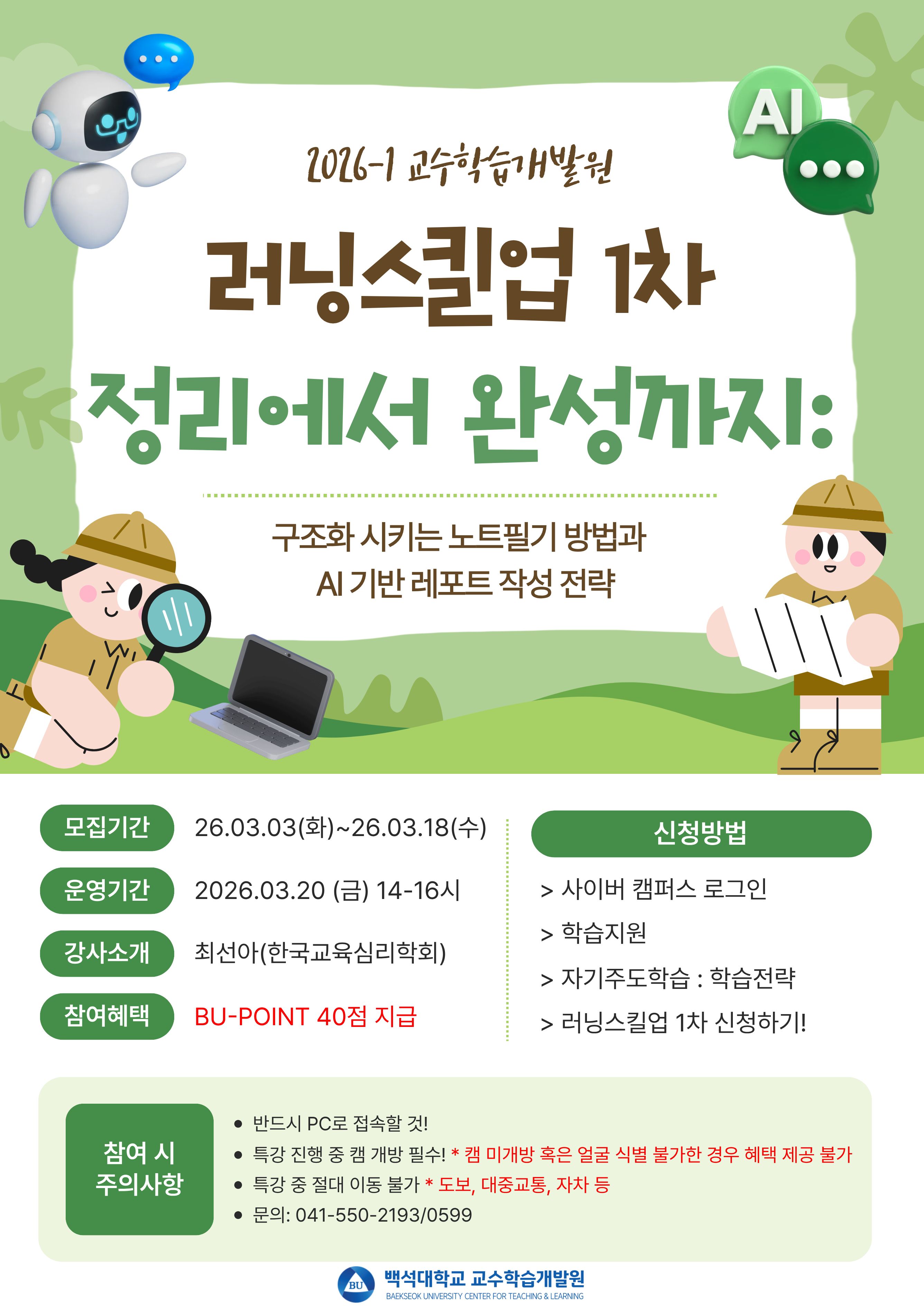 2026학년도 1학기 [교수학습개발원] 러닝스킬업 1차 모집 안내