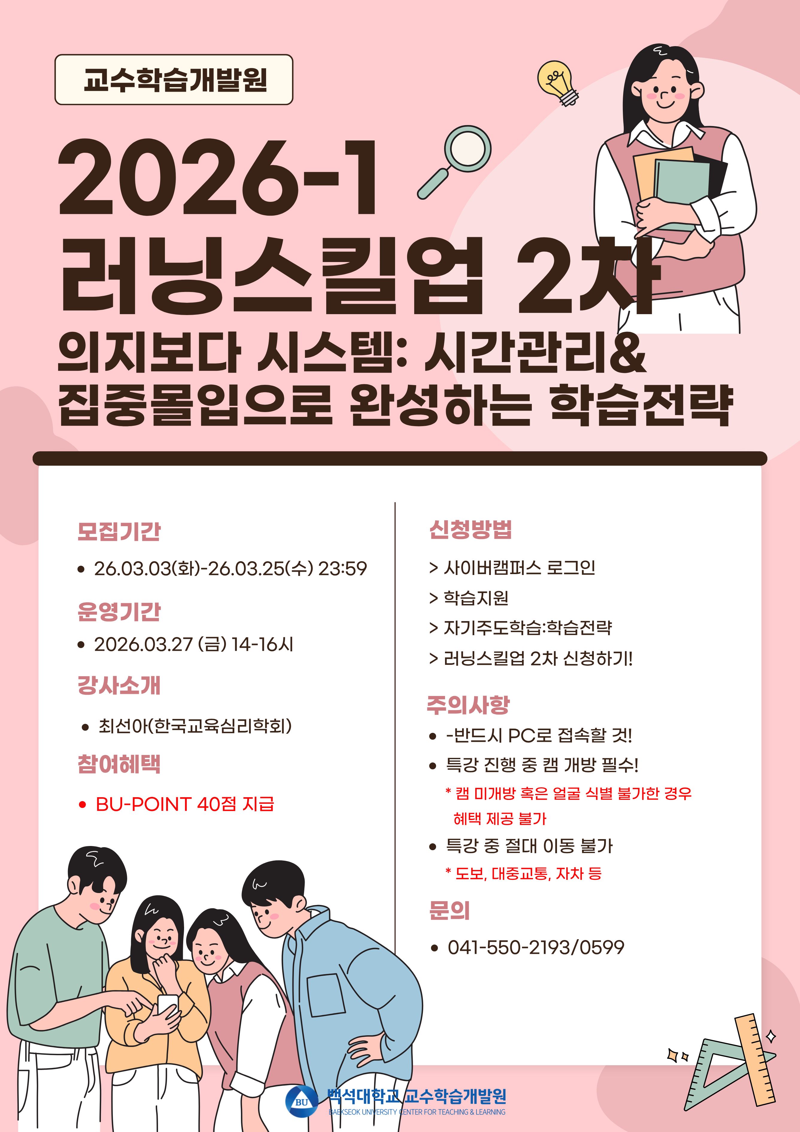 [교수학습개발원] 2026-1학기 러닝스킬업 2차 참여자 모집 안내