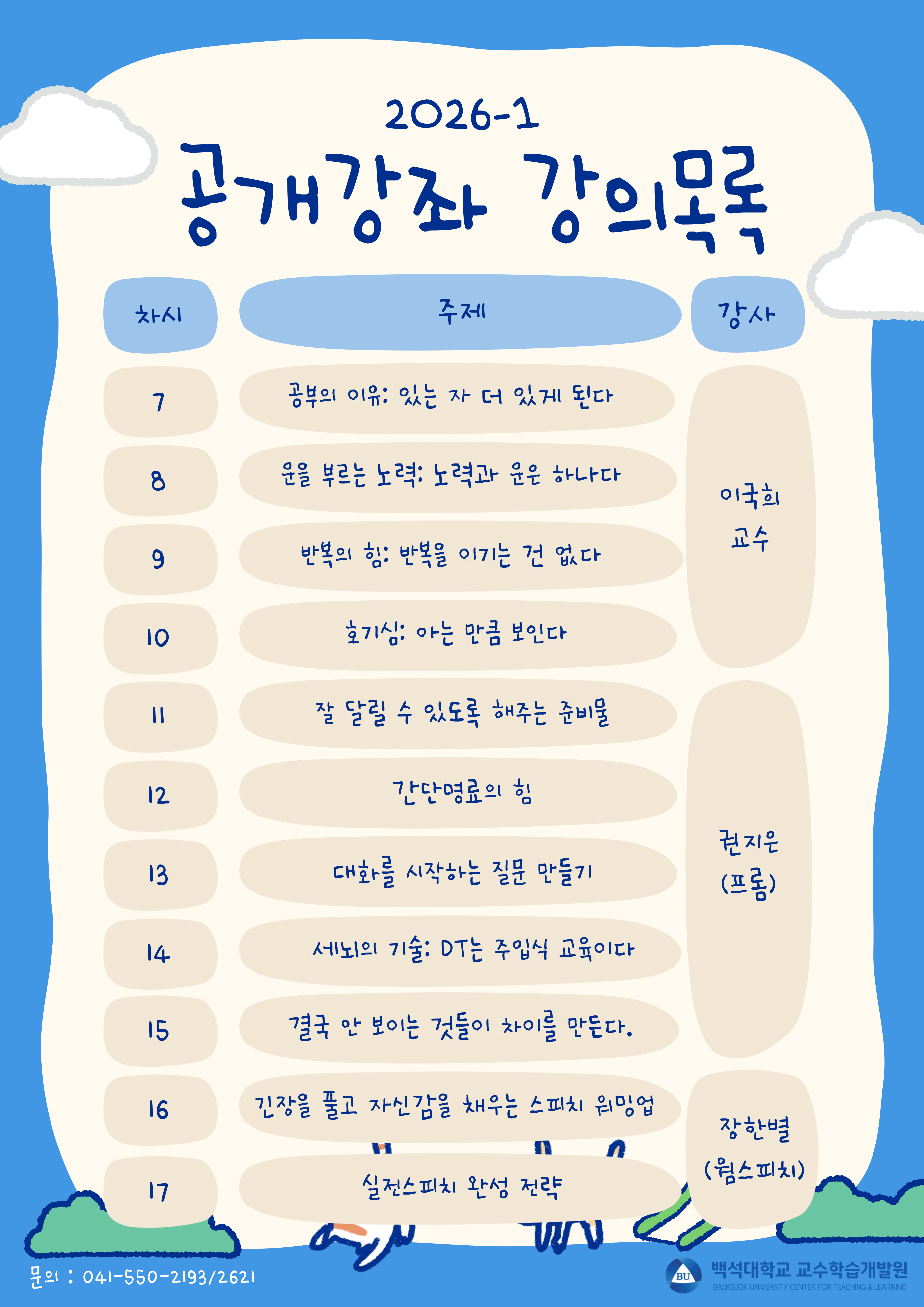 2026학년도 1학기 [교수학습개발원] 러닝스킬업 7차~17차 모집 안내