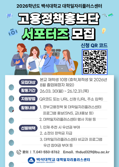 <2026학년도 백석대학교 대학일자리플러스센터 고용정책홍보단 서포터즈 모집>