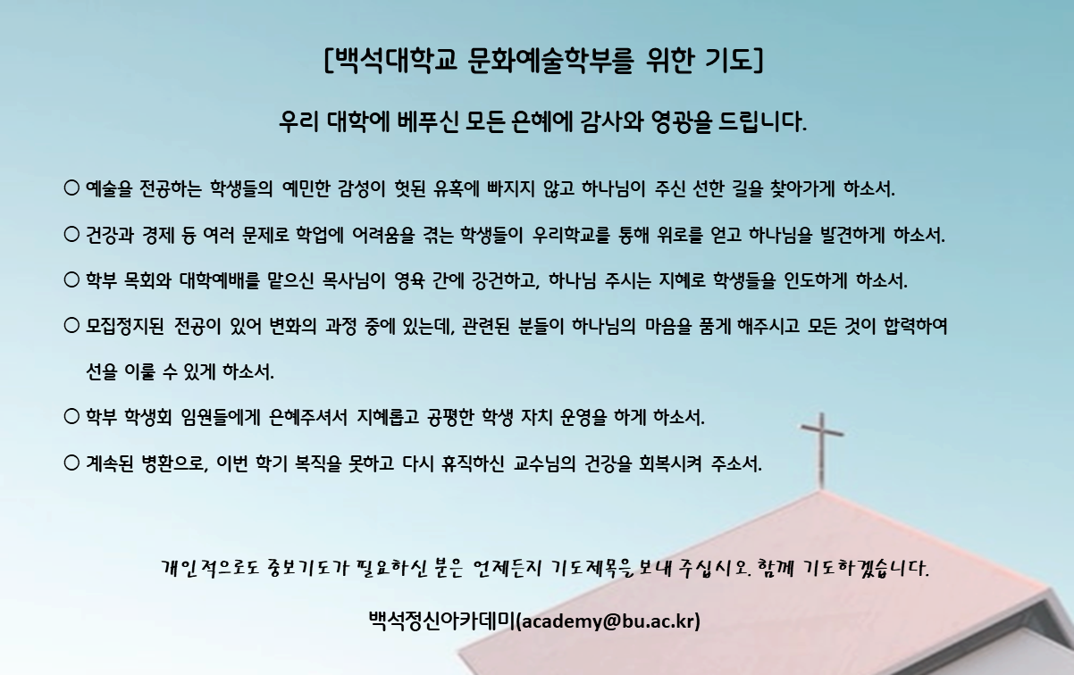우리대학과 학부를 위한 기도입니다. 함께 기도해 주세요.