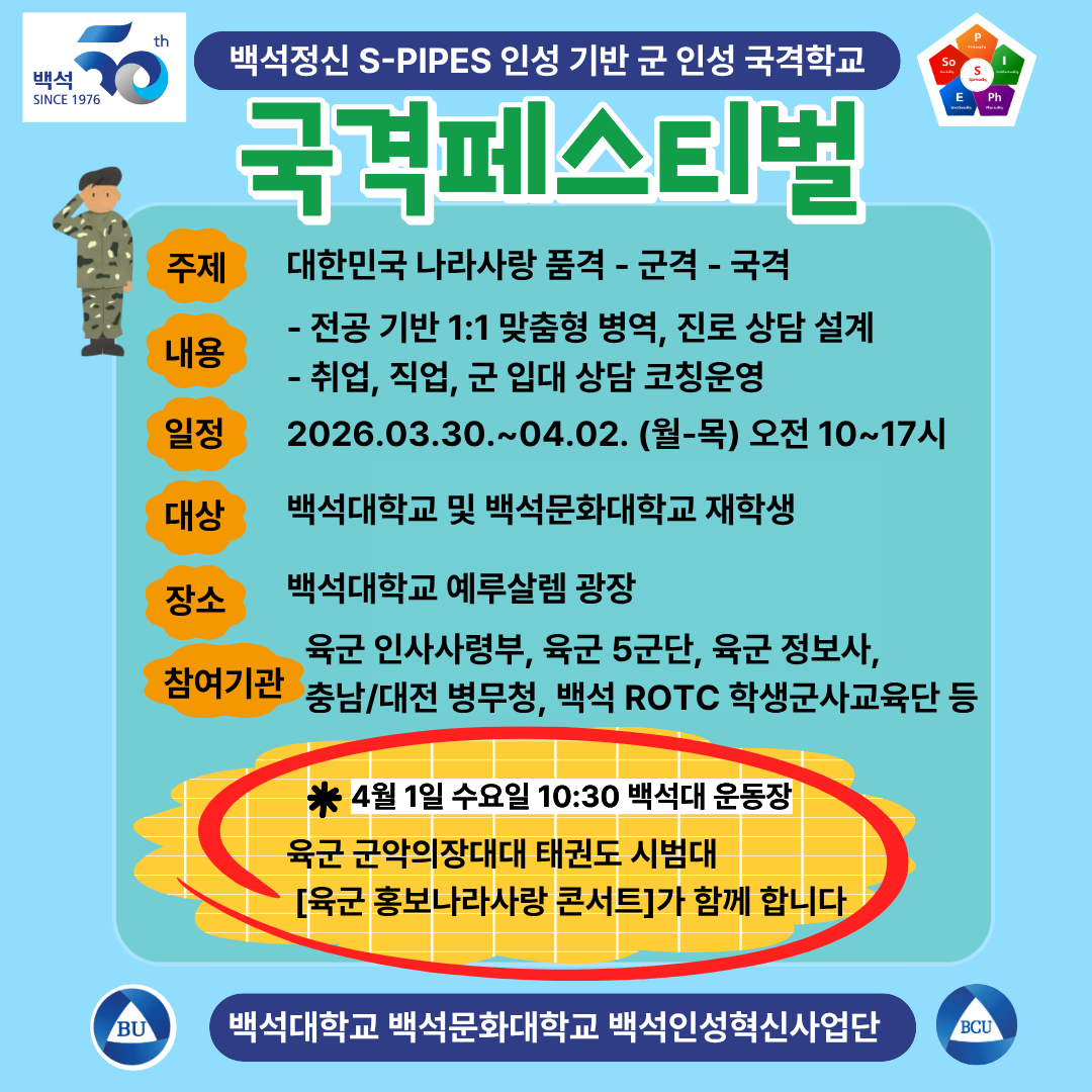 04.01. 수요일 10:30 공연 (장소 – 백석대학교 운동장)