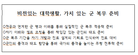 각 군 : 전공에 따른 진로, 직업 군입대 상담 코칭 운영