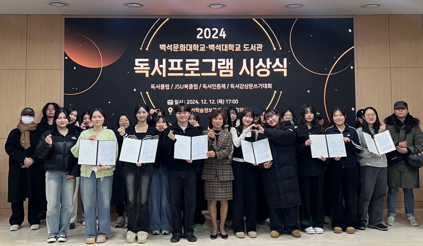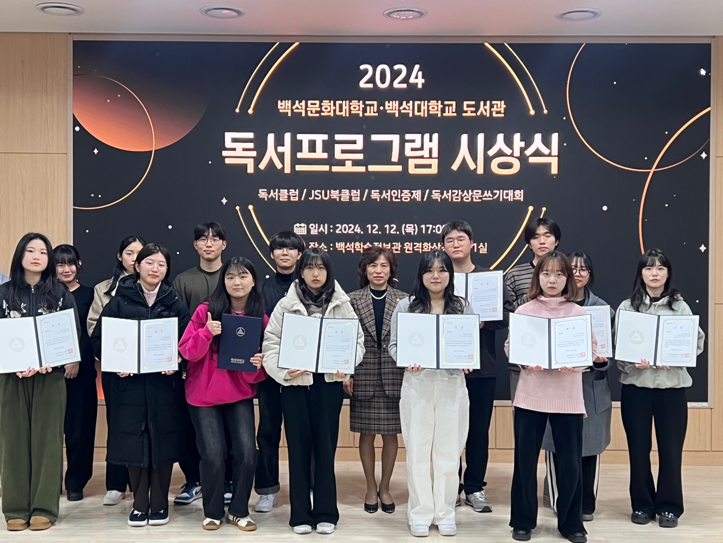 ▲ 2024학년도 백석대학교 도서관 독서 프로그램 '독서인증제' 수상자들의 기념촬영
