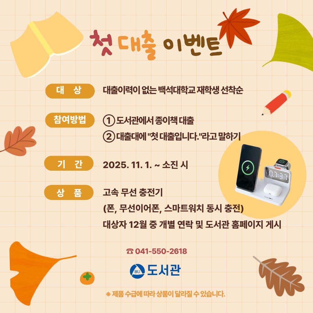 ■ 대상 : 대출이력이 없는 백석대학교 재학생 선착순