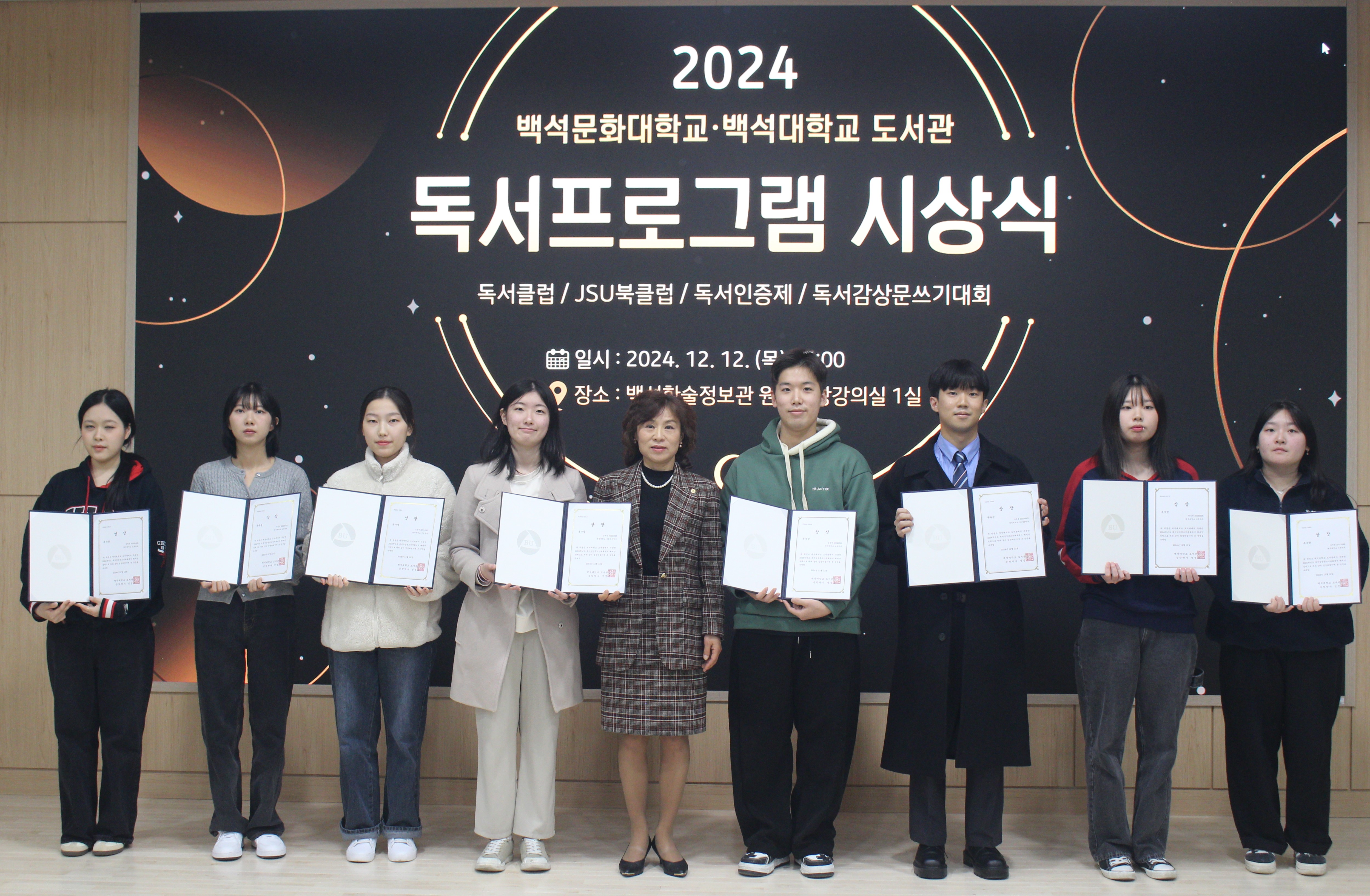 ▲ 2024학년도 백석대학교 도서관 독서 프로그램 '독서인증제' 수상자들의 기념촬영